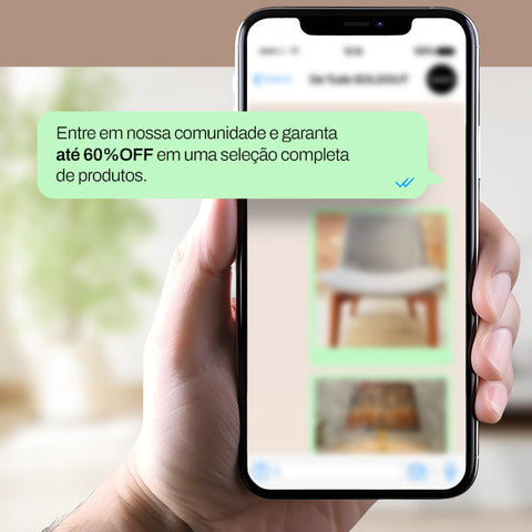 Entre gratuitamente no nosso grupo exclusivo no WhatsApp e faça parte da comunidade com mais de 550 clientes ativos! Receba novidades e ofertas especiais antes de serem divulgadas no site ou marketplaces, tudo sem custo e direto no seu celular.